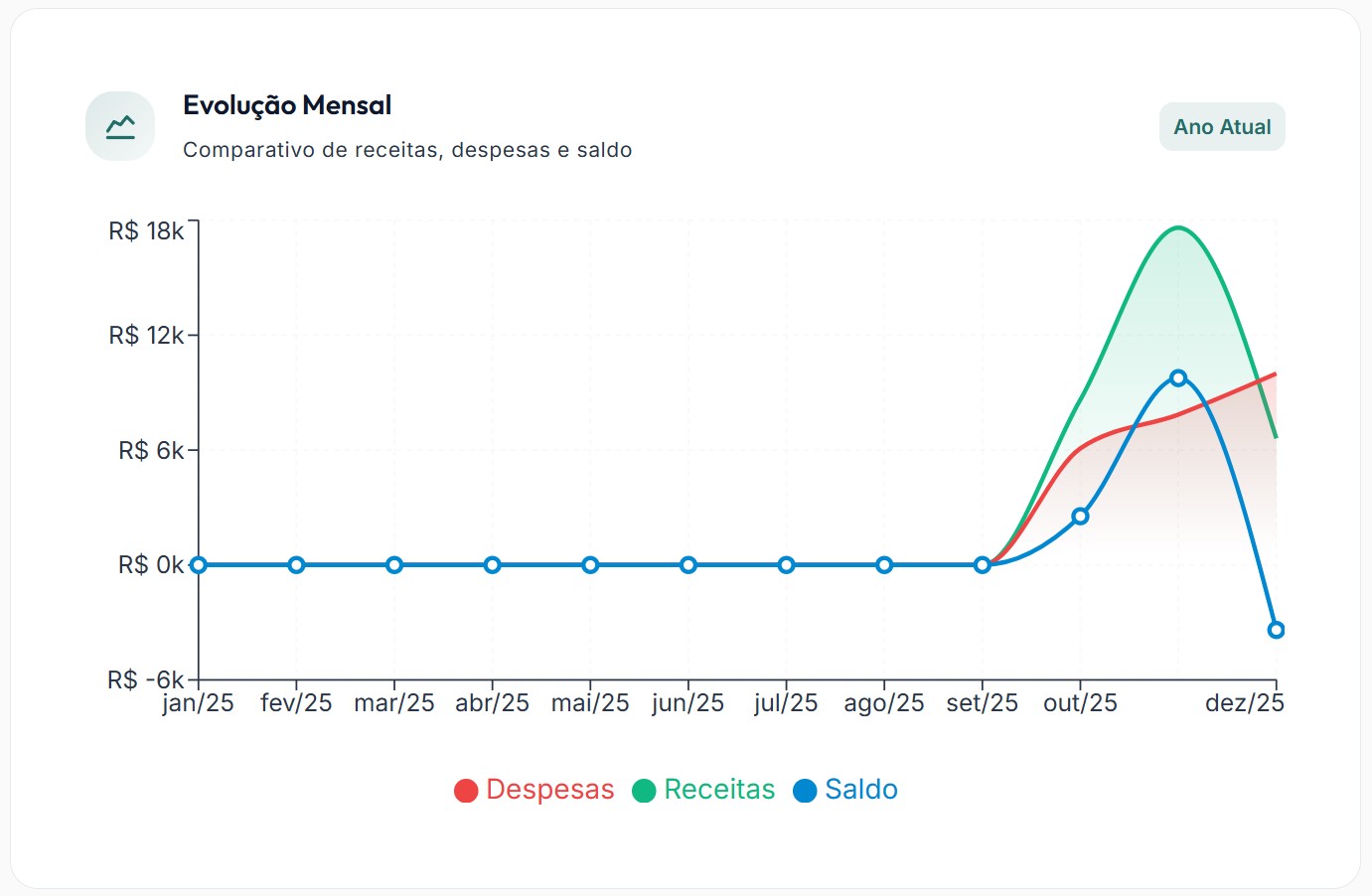 Finalmente abandonei minhas planilhas de gastos. Agora tudo está centralizado e posso ver meus gastos de forma clara com gráficos intuitivos.