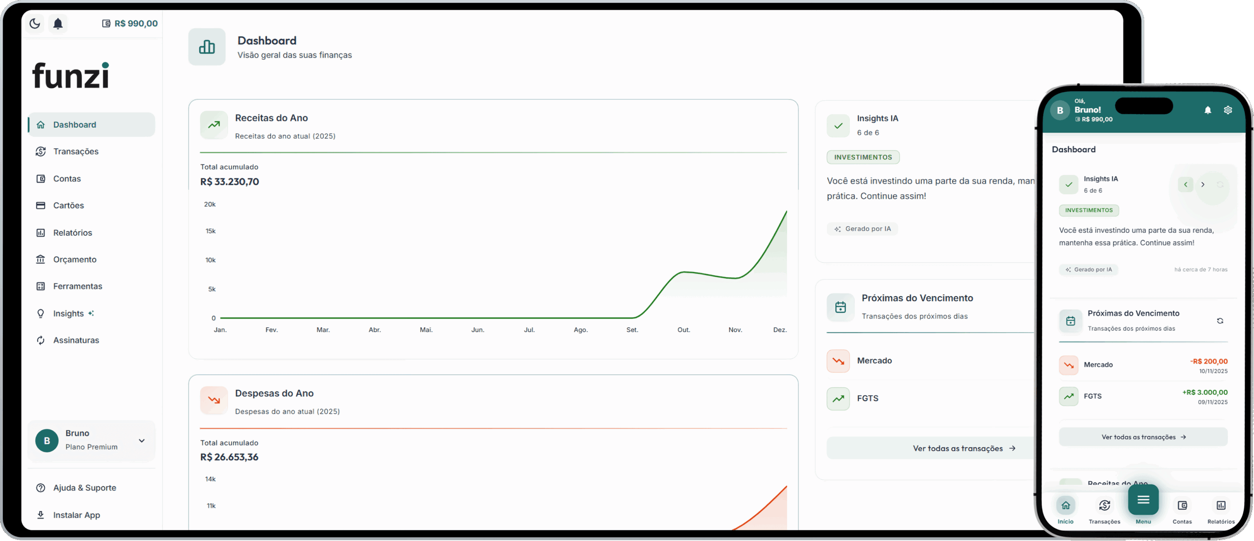 Funzi é o app que facilita seu orçamento, monitora seus gastos e oferece insights inteligentes de economia com IA.